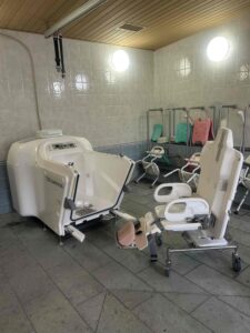 車いすに乗ったまま安心してご入浴いただける最新の機械浴槽を導入しました。